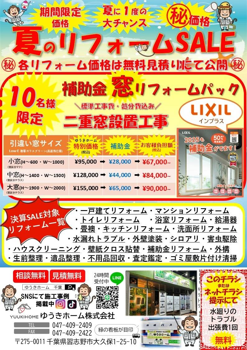 夏リフォームセールチラシ 9月の間までにお問い合わせした時点で有効 千葉県民限定価格
