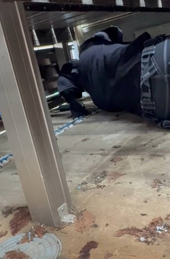 📸床下ウッドデッキ下に潜り込む職人