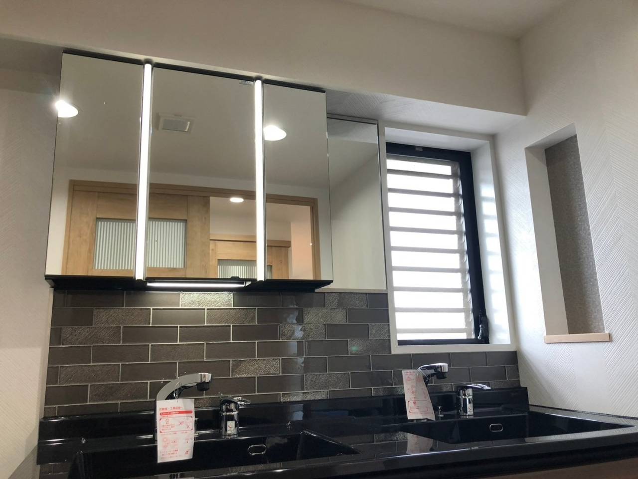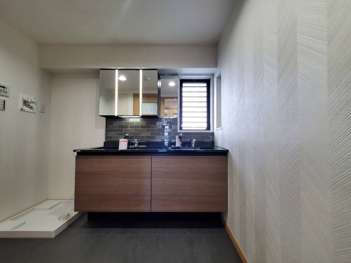 【LIXILルミシス × ガラスタイル】今、人気のブラック×ブラウンでつくる高級洗面台リフォーム